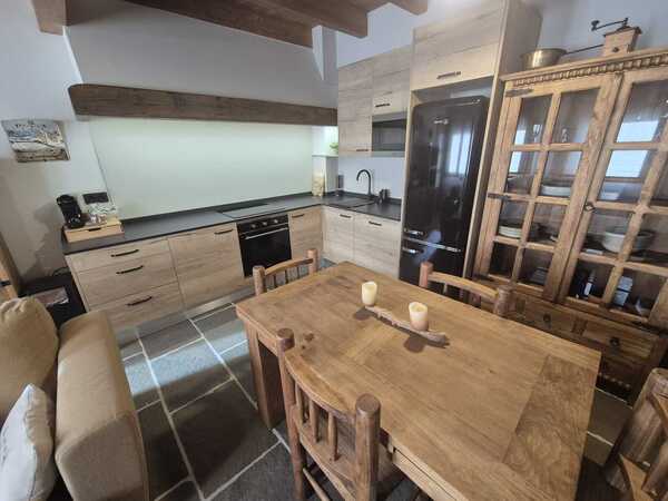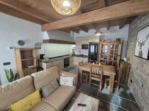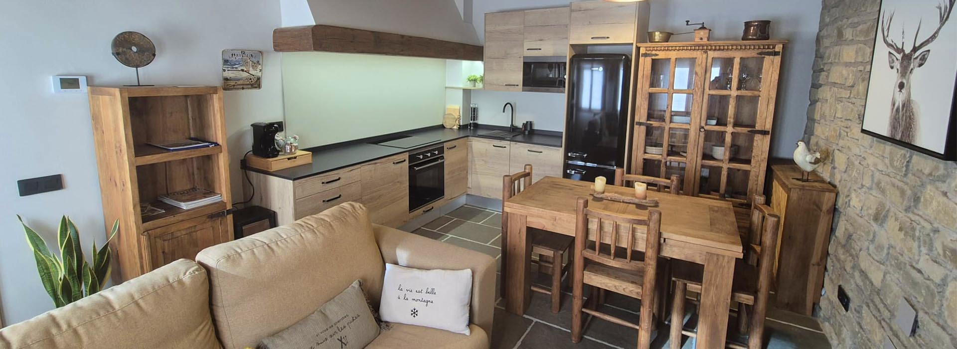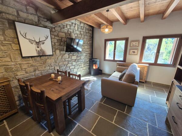 Vivienda de estilo rústico de montaña, completa para 4 persona en 2 habitaciones dobles.